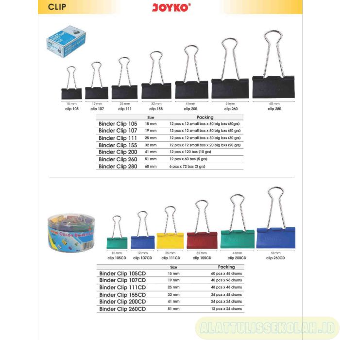 Klip Penjepit Kertas Binder Clip Joyko 105 107 111 155 200 260 280 300 H107RG H155RG kemasan CD SL PTL FC2